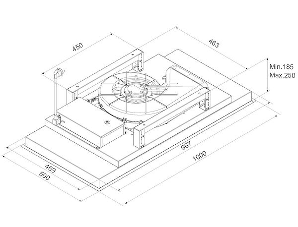 Minimum overallFoster ceiling-mount ventilation systems require little space. The icon appears next to models that require less than 20 cm between the concrete ceiling and the countertop.