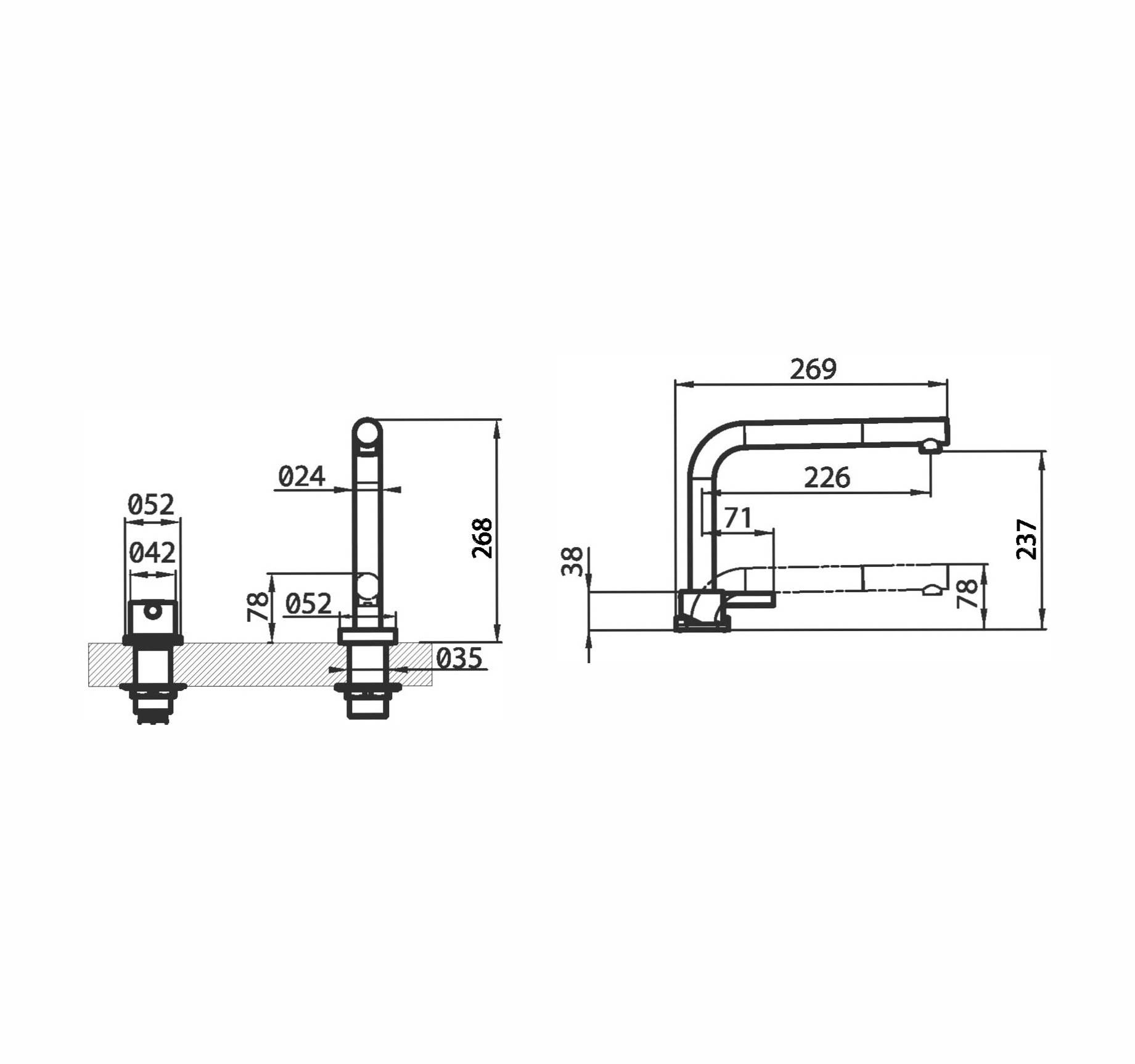 Extractable headThe head of the tap is extractable, in order to easily reach any area of the sink.