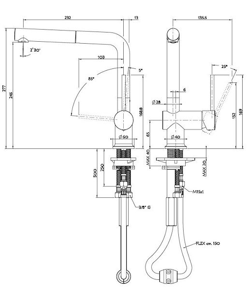 Foster’s mixer taps are equipped with the strenghtening plate that offers perfect stability on any sink.
