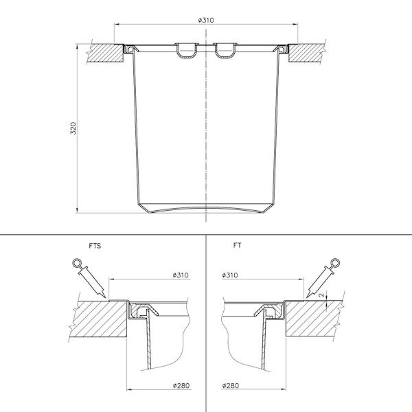 Pattumiera con accesso dal top e sacchetto estraibile dall'alto. Dotata di coperchio in acciaio inox (capienza 13 litri).