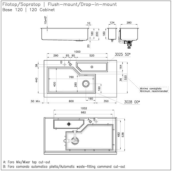 Perimetral overflowThe overflow is always a security on the Foster sinks that prevents the overflow of water in case of oversights. The perimeter drain solution improves aesthetics thanks to its square and essential shape.