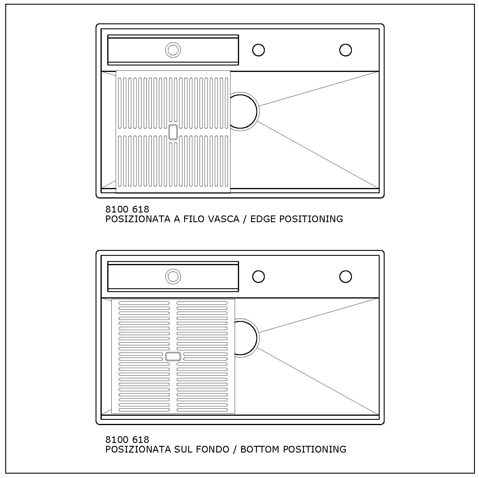 2nd / 3rd hole availaibleThe sink can be customized with the execution on request of additional holes, usable for double-hole mixers, for remote controlled drains or for the installation of soap dispensers. The positions are marked on the drawings with dotted line holes.