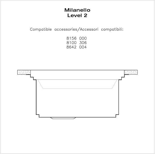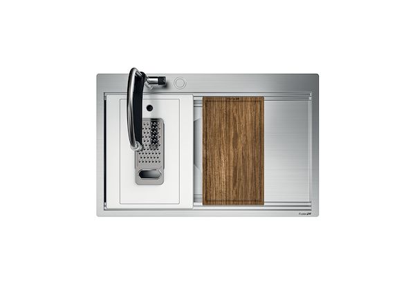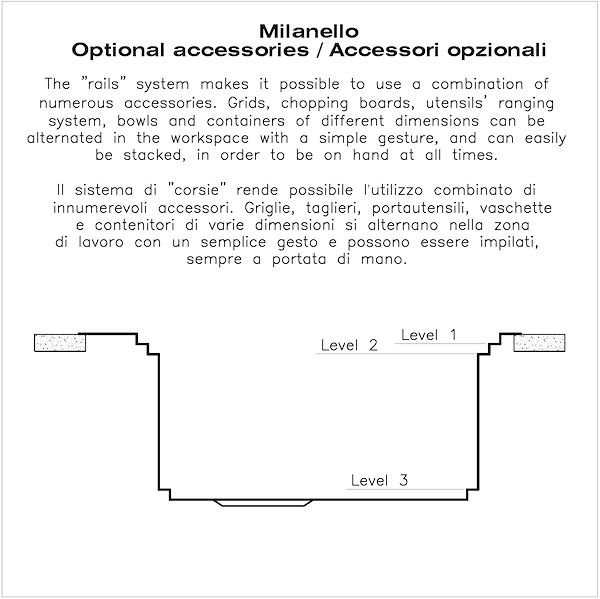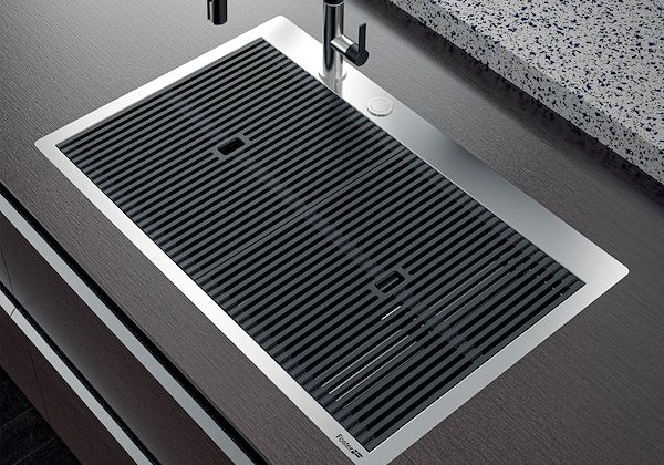 Triple recess - sliding accessoriesThe Foster Milano sink has an ingenious design that makes it simple to use a large set of optional accessories. On the topmost supporting step, the innovative Black grids slide, creating a large and practical surface to rinse food and crockery. The second step is meant to support and allow the... sliding of a complete combination of accessories, which make some operations practical and safe: rinse, drain, slice, grate… everything can be done inside the sink. The third supporting step is on the bottom of the bowl. On this step one can rest the Black grids, making it possible to rinse foodstuffs without their coming in contact with the bottom of the sink, which may be dirty.