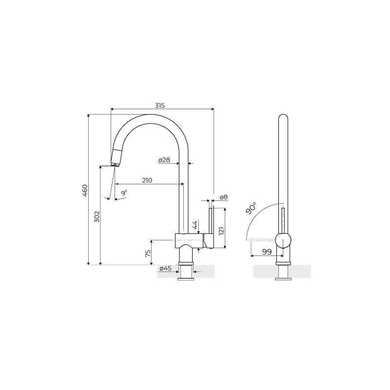 All the taps have a wide angle of rotation. Some models even permit a full 360° rotation.