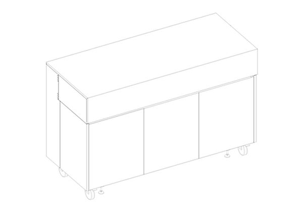 Canal equipado con portavasos / portaplatos, compartimiento de enchufe retráctil (toma de corriente 230V 16A IP66 insertada en el compartimiento enrasado con puerta para cerrar)