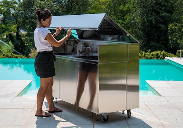Tapa en acero AISI 316 para cubrir toda la cocina, con sistema de bloqueo anti cierre.
