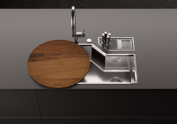 REBOSADERO PERIMETRALEl rebosadero es una seguridad siempre presente en los fregaderos Foster que impide el desbordamiento del agua de la cubeta en caso de olvido. La solución del desagüe perimetral mejora la estética gracias a la forma cuadrada y esencial.