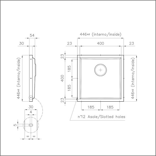 REBOSADERO PERIMETRALEl rebosadero es una seguridad siempre presente en los fregaderos Foster que impide el desbordamiento del agua de la cubeta en caso de olvido. La solución del desagüe perimetral mejora la estética gracias a la forma cuadrada y esencial.
