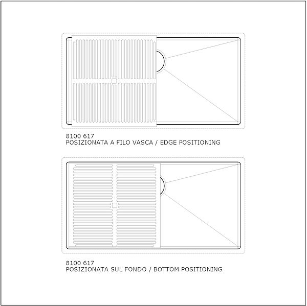 El rebosadero es una seguridad siempre presente en los fregaderos Foster que impide el desbordamiento del agua de la cubeta en caso de olvido. La solución del desagüe perimetral mejora la estética gracias a la forma cuadrada y esencial.