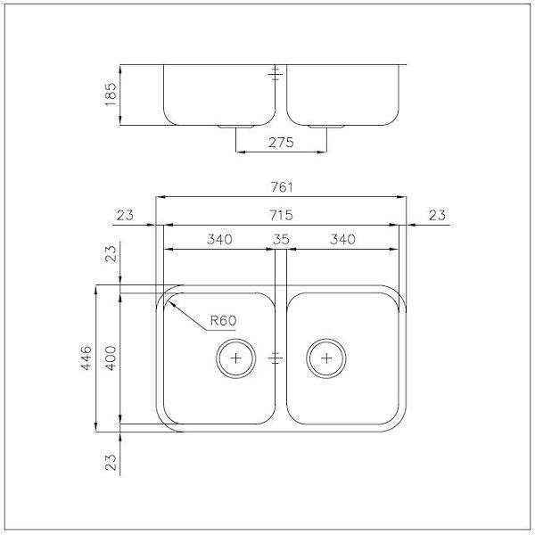 Fregadero de acero inoxidable AISI 304 - acabado cepillado