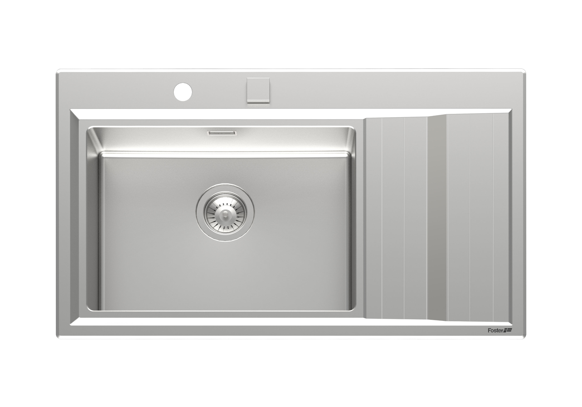 El rebosadero es una seguridad siempre presente en los fregaderos Foster que impide el desbordamiento del agua de la cubeta en caso de olvido. La solución del desagüe perimetral mejora la estética gracias a la forma cuadrada y esencial.