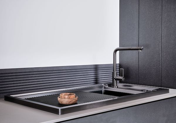 DESAGÜE SPACEGracias al tapón en acero inoxidable da al desagüe un aspecto minimalista. Space también tiene un espacio limitado y permite un óptimo utilizo del compartimiento inferior del fregadero.