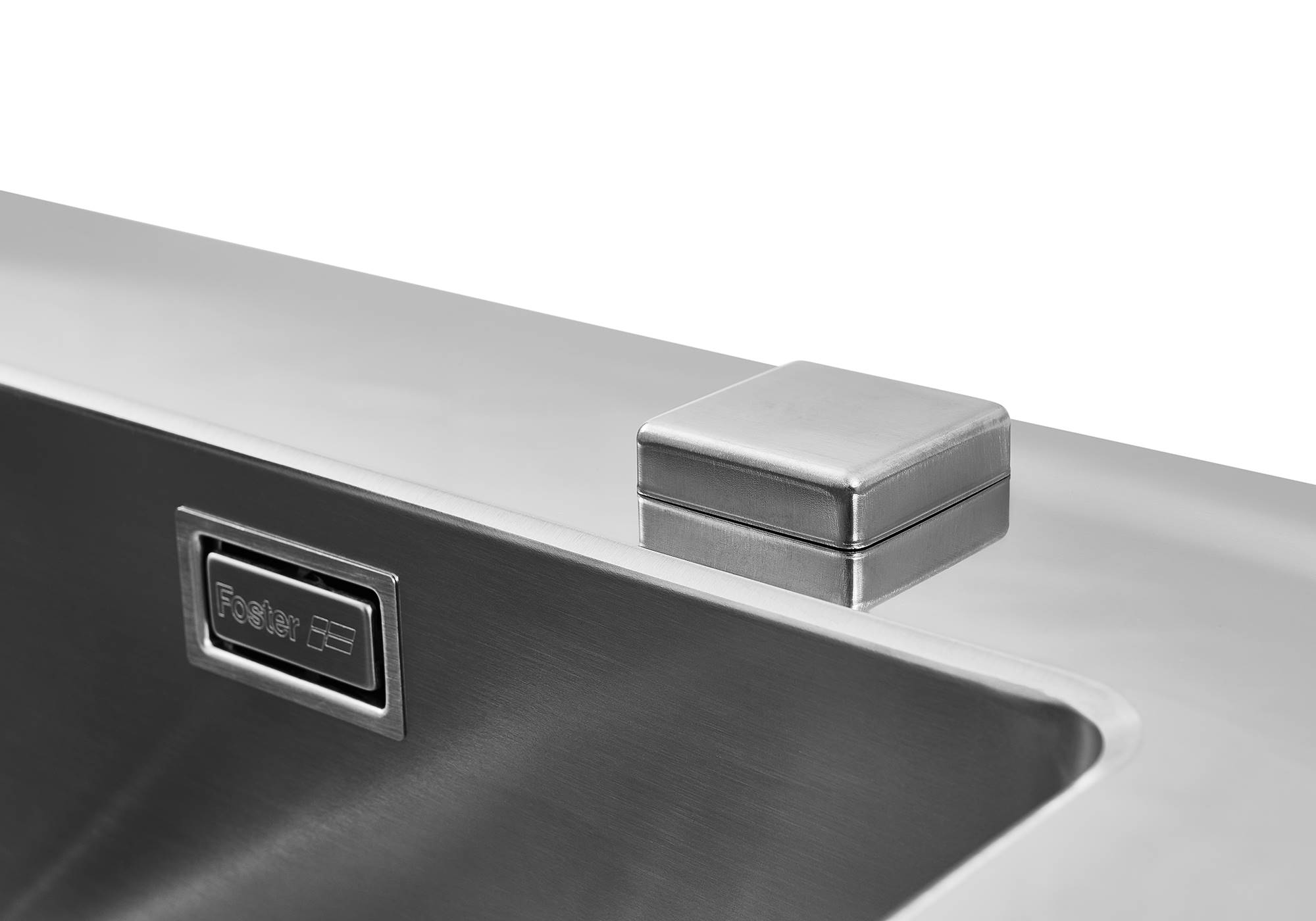 PÉRIMÈTRE TROP COMPLETLe trop plein est un dispositif de sécurité toujours présent sur les éviers Foster qui empêche l'eau de déborder de la cuve en cas d'oubli. La solution du vidange périmétrique améliore l'esthétique grâce à sa forme carrée et essentielle.