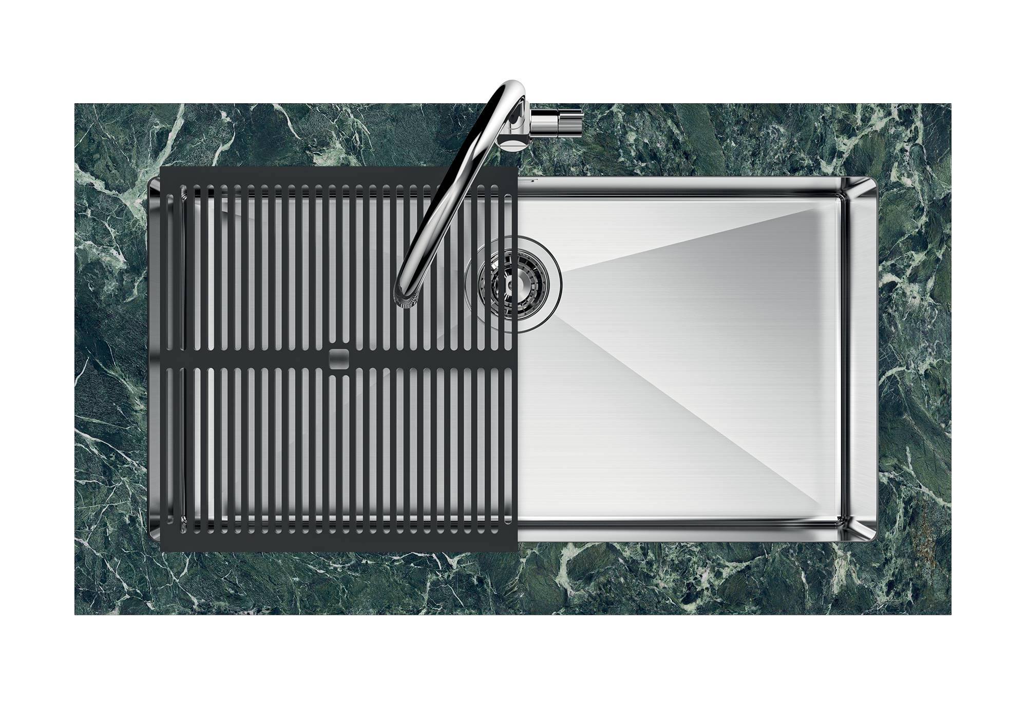 FOND DE DIAMANTL'évacuation de l'eau au fond du cuve est une caractéristique importante, toujours soignée dans les solutions Foster. Dans les modèles carrés à fond plat, la vidange est garantie par l'élégant motif en losange qui facilite l'évacuation de l'eau.