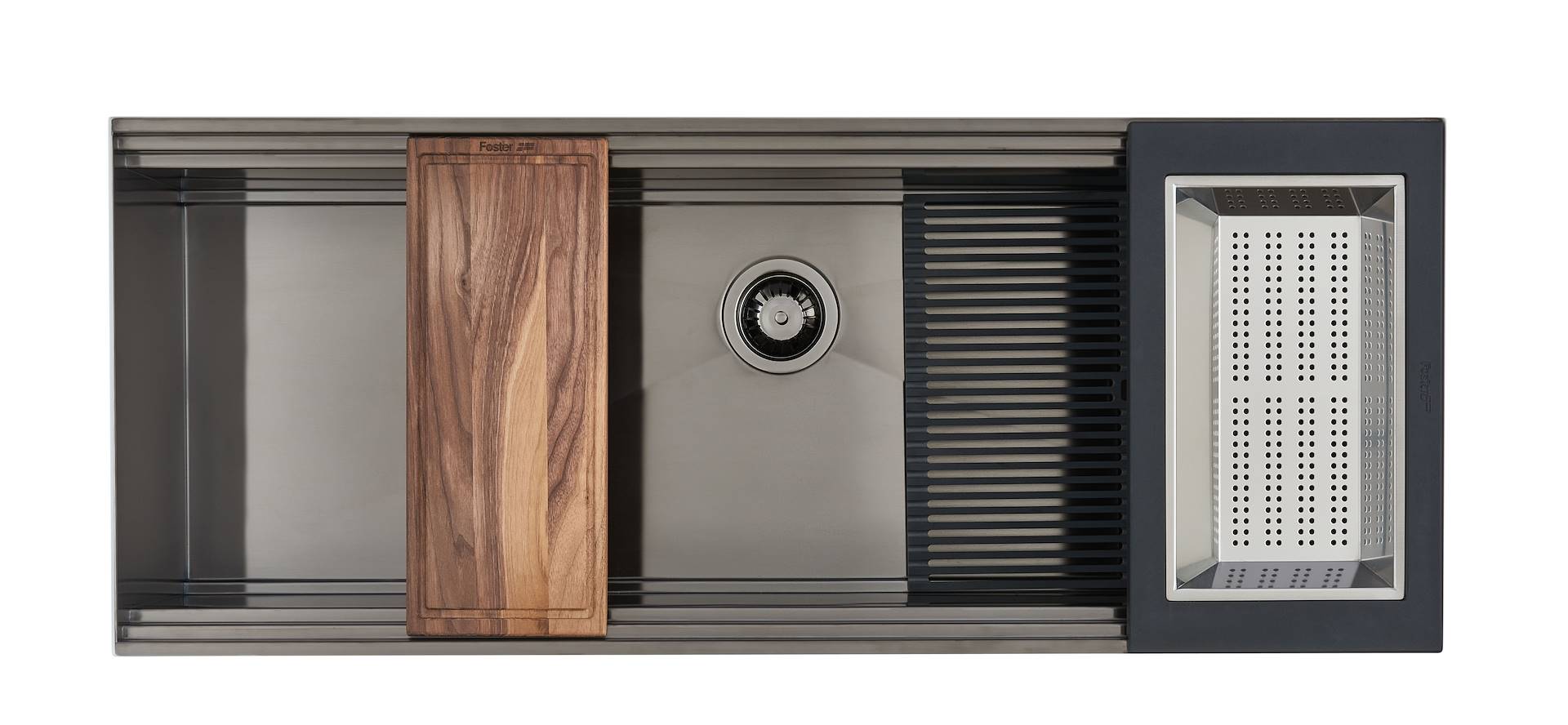 HappyHour non è un semplice lavello, Foster ha voluto andare oltre proponendo una gamma di accessori e complementi perfettamente integrabili ed in grado di rendere la cucina un perfetto esempio di design personalizzato e coordinato.