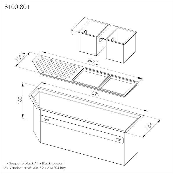 Ganci di fissaggio, guarnizione, piletta, imballo in scatola