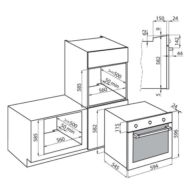 VENTILAZIONE TANGENZIALELa speciale ventilazione crea un flusso d’aria tra muffola e telaio riducendo la temperatura delle superfici esterne. Il forno così non sottopone i mobili ad elevati sbalzi termici.
