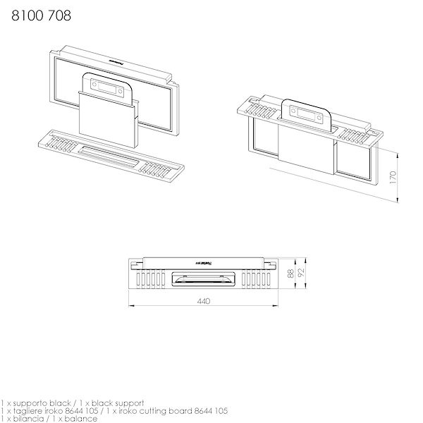 Note:Il tagliere è utilizzabile solamente nelle vasche con profondità 400 mm