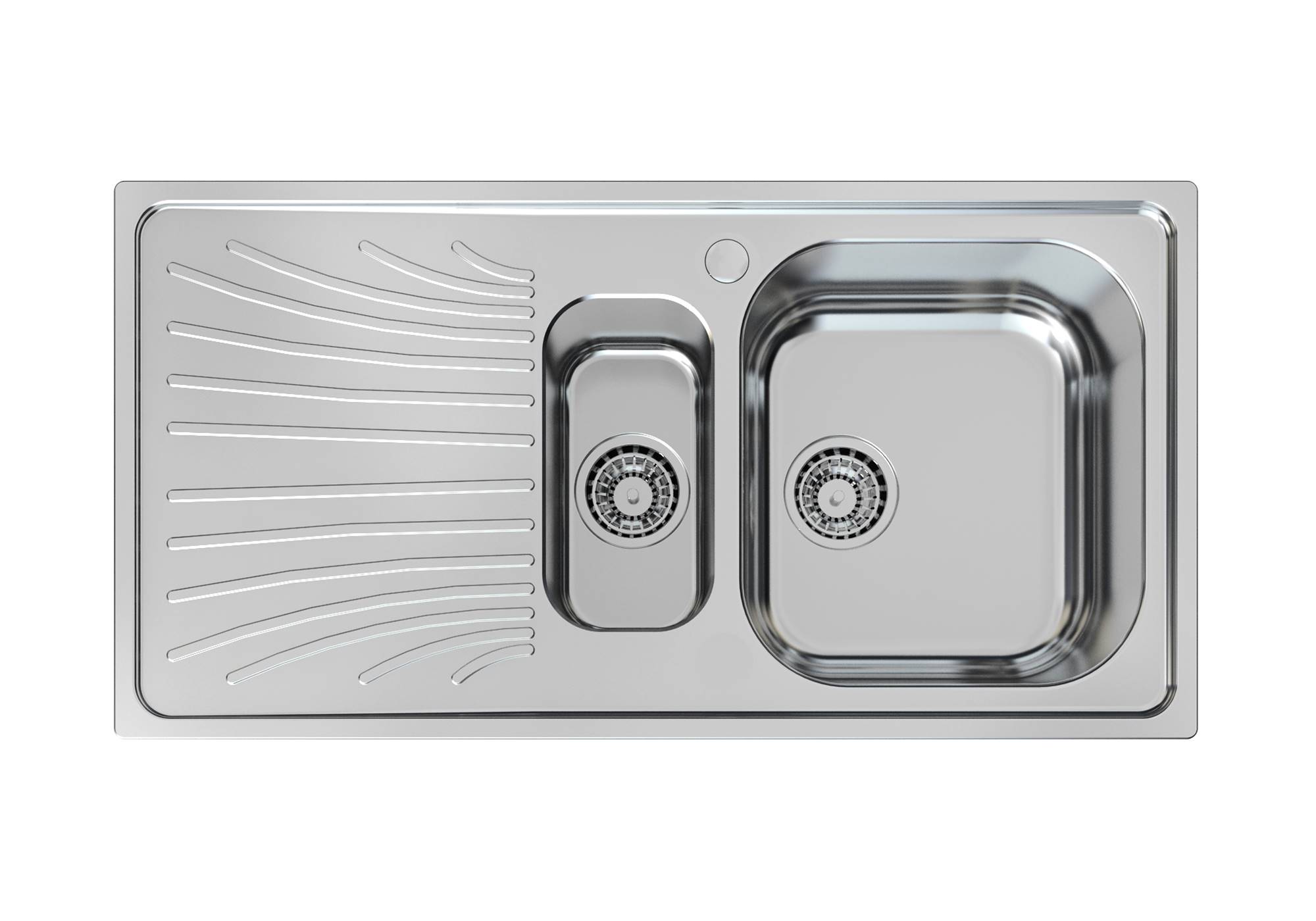 Lo scarico è dotato di piletta grande 3,5”, con il pratico tappo a cestello che impedisce il defluire nello scarico di parti solide.