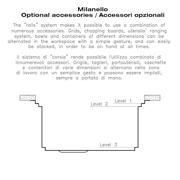 TRIPLO INVASO- SISTEMA ACCESSORI SCORREVOLIFoster Milano ha un ingegnoso design, con un sistema di tre invasi dove gli accessori alloggiano su livelli distinti. Sul primo, scorrono le innovative griglie Black, una grande e pratica superficie per risciacquare, scolare, lavorare. Il secondo invaso è studiato per sostenere e far scorrere una...a combinazione completa di accessori che rendono sicura e pratica ogni operazione: risciacquare, scolare, affettare, grattugiare… sempre all’interno del lavello.