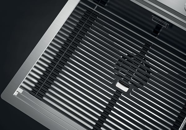 Il terzo invaso è sul fondo della vasca. Su questo trovano alloggio le griglie Black per risciacquare i cibi senza che vengano a contatto con il fondo eventualmente sporco, o per appoggiare pentole senza graffiare.