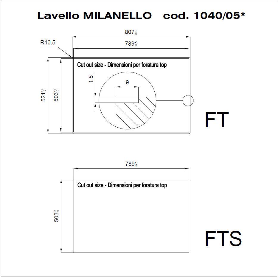 POSSIBILITÀ FORI AGGIUNTIVIIl lavello è personalizzabile con l’esecuzione su richiesta in fase d’ordine di fori aggiuntivi, utilizzabili per miscelatori a doppio foro, per pilette con comando remoto o per l’installazione di dispenser per il sapone. Le posizioni sono segnalate sui disegni con fori a linea tratteggiata.