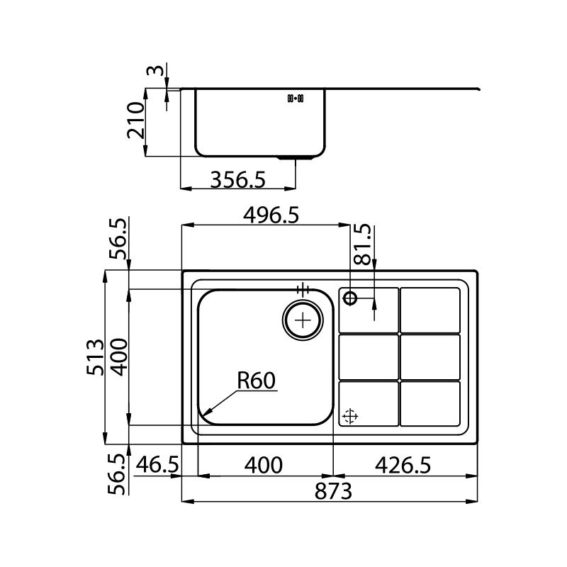 POSSIBILITÀ FORI AGGIUNTIVIIl lavello è personalizzabile con l’esecuzione su richiesta in fase d’ordine di fori aggiuntivi, utilizzabili per miscelatori a doppio foro, per pilette con comando remoto o per l’installazione di dispenser per il sapone. Le posizioni sono segnalate sui disegni con fori a linea tratteggiata.