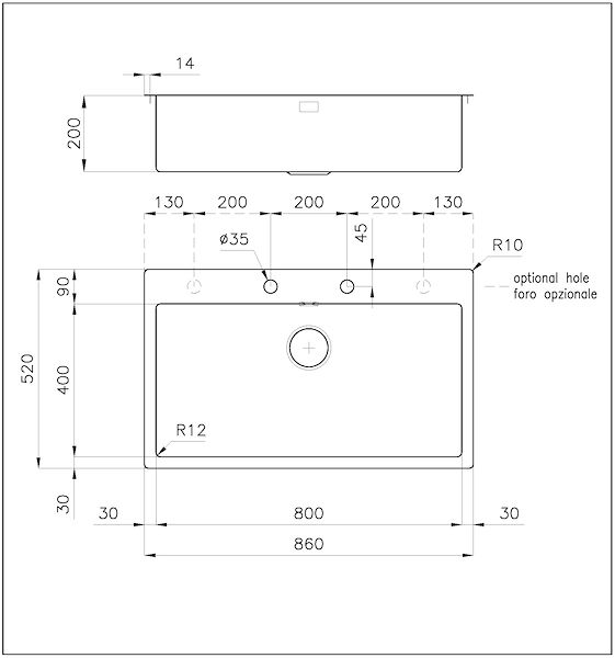 DOPPIO FORO MISCELATOREL’ampio banco rubinetteria è già provvisto di serie di 2 fori rubinetto. Nel secondo foro è possibile installare il comando remoto della piletta automatica o, in alternativa, un pratico dispenser per il sapone.