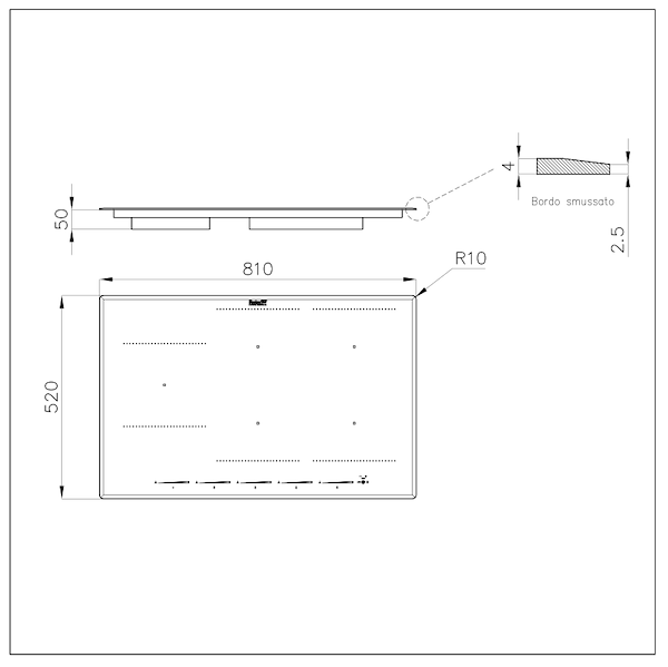 Bordo bisellato - per installazione a filo piano o per incasso sopratop