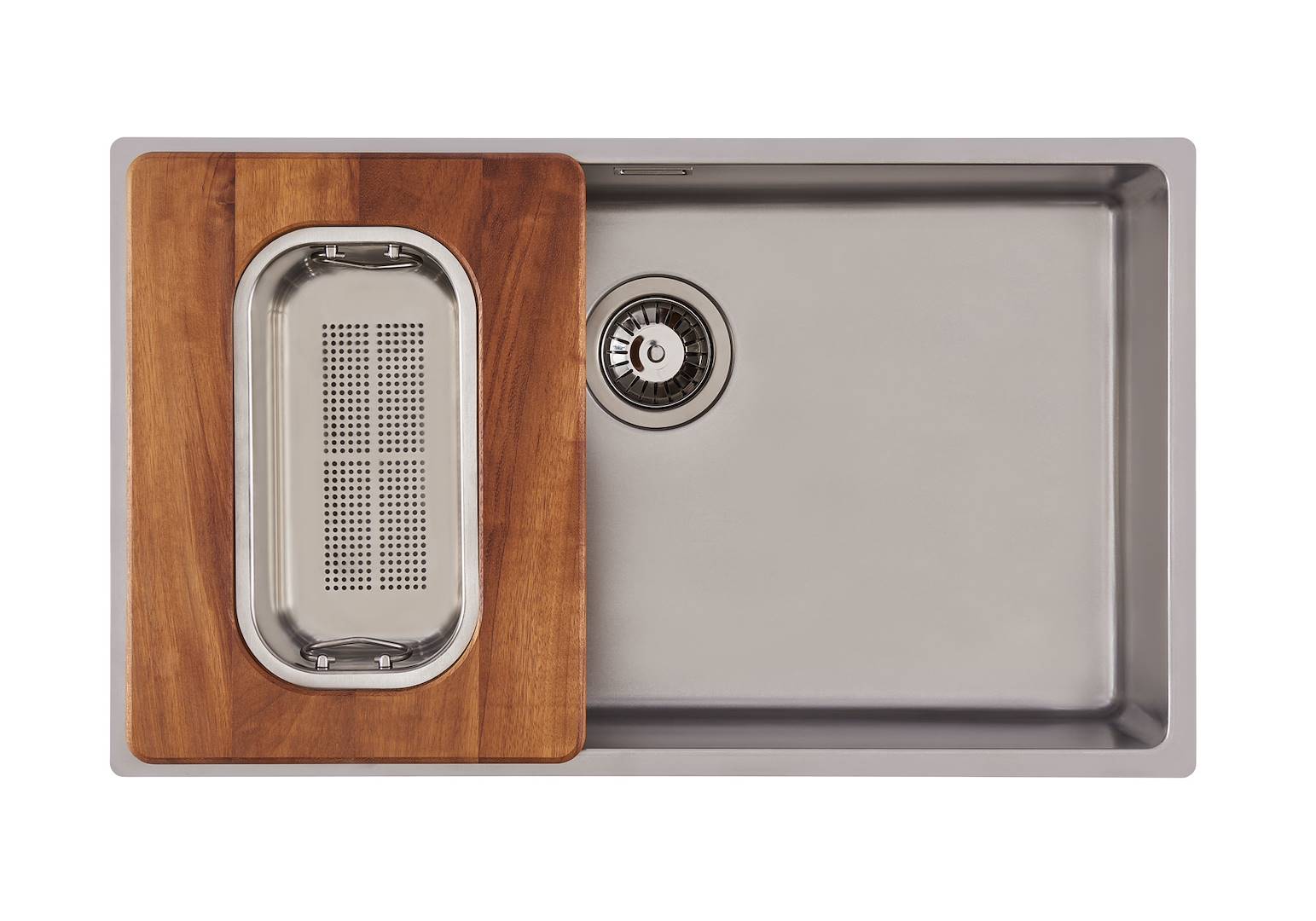 Tagliere Twin in legno Iroko con vaschetta scolapasta in acciaio inox